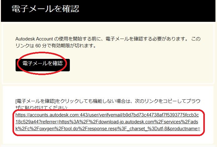 登録したメールが正しいか「Autodesk アカウントを確認」のメールです。「電子メール」確認をクリックしてインストールをできるようにしておきましょう。