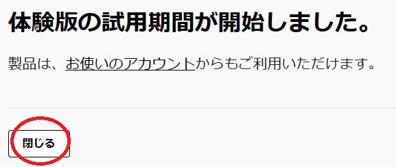 これで使用期間が開始します。最後に「閉じる」を押します。