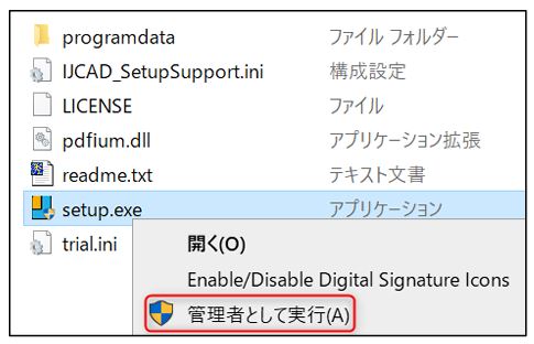 2.解凍されたフォルダを開きset up.exeをクリックして管理者として実行をクリック