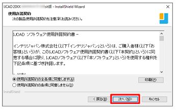 4.許諾契約をお読みいただき「同意する」のラジオボタンをクリックし次へ。