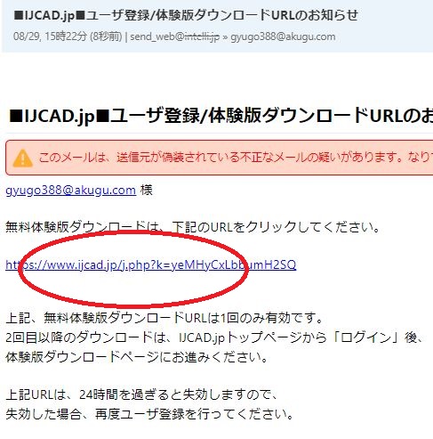 3.メールアドレスフォルダを見てください。このようなメールが来ているかと思います。赤い色の囲ってあるURLをクリックします。
